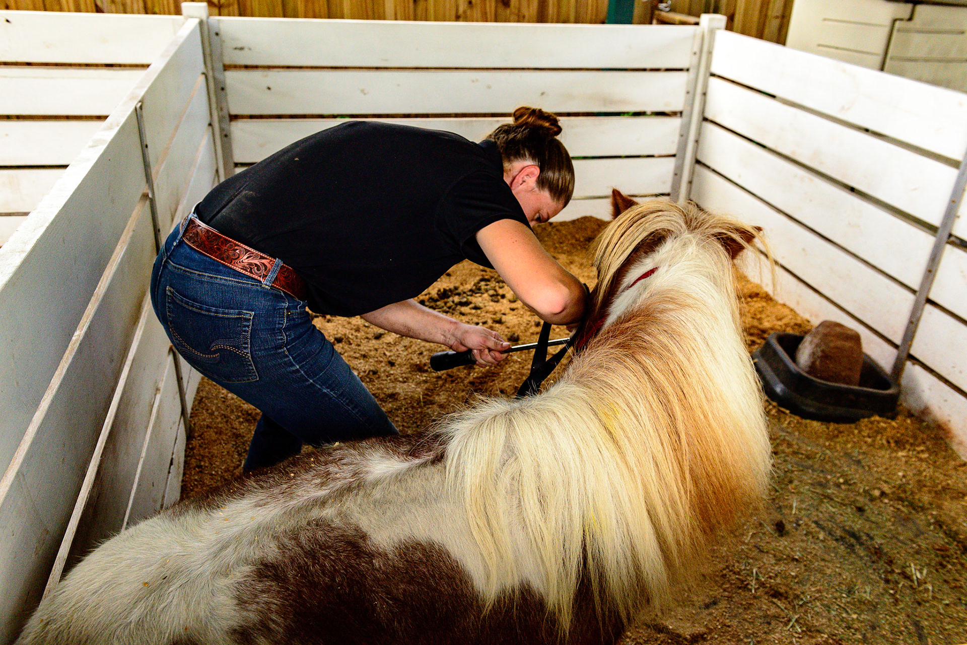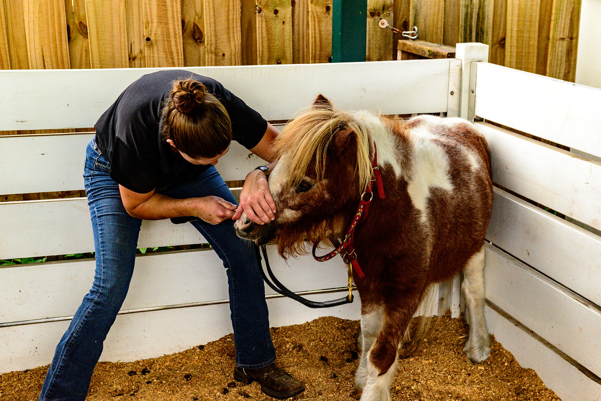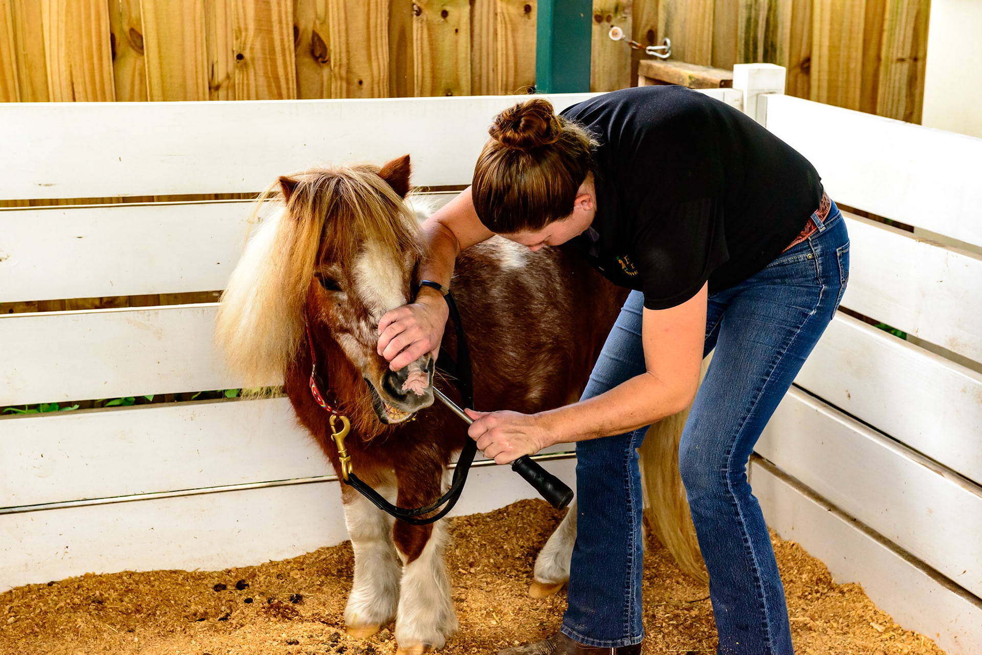 7/7 Melissa works on a difficult horse. A very confident choleric horse that doesn't connect well with people. This image of Melissa is to make up for the other one, but more importantly it shows you just how relaxed this horse is and she is not even half way done. This horse has been extremely difficult to float in the past for other dentistry work even with heavy sedation. The reason is simply because the dentist had not used the leadership skills necessary to connect with this confident and independent horse (these traits obviously seen in the horse standing here).